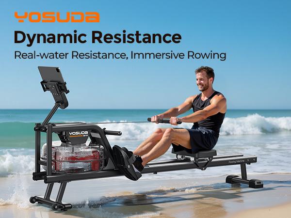 YOSUDA Water Rowing Machine for Home Use, Bluetooth App Compatible, Extra-Long Rail for Taller Athletes, Comfortable Seat